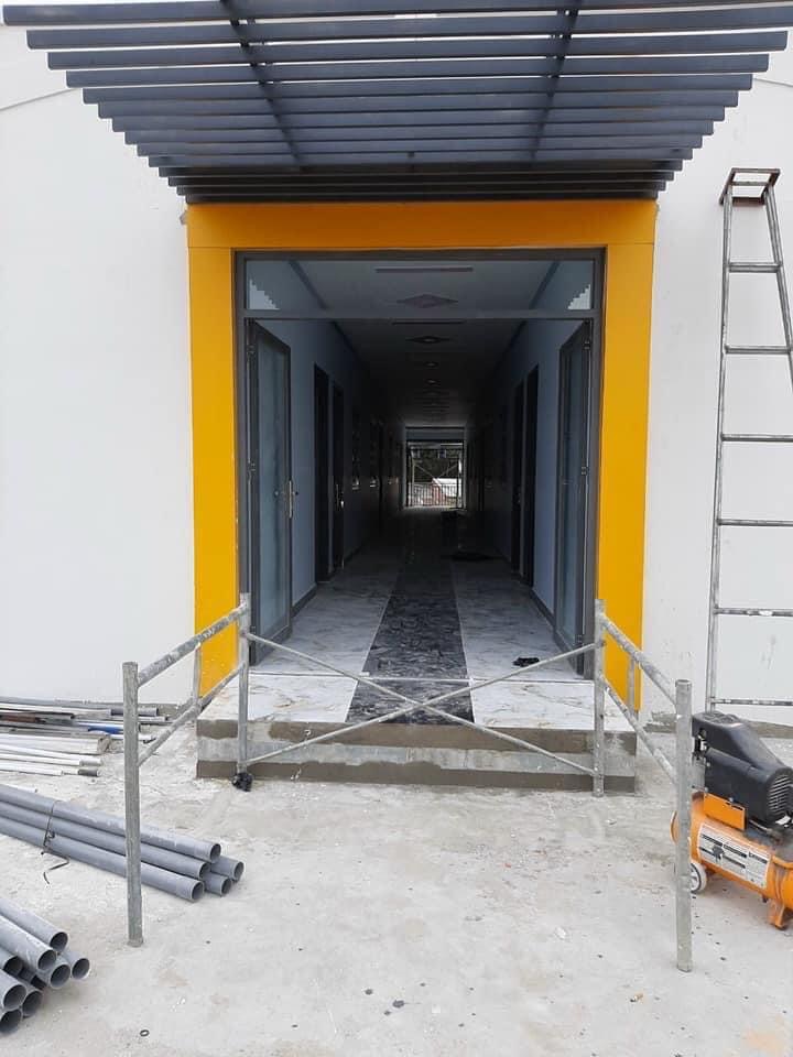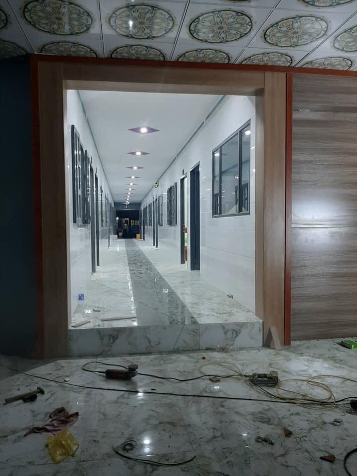 Từ sảnh lễ tân, lối hành lang dẫn vào khu phòng được hoàn thiện đồng bộ: sàn sạch bóng, hệ cửa phòng bố trí thẳng hàng,