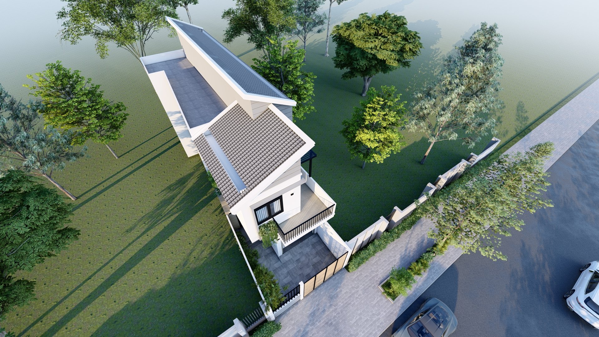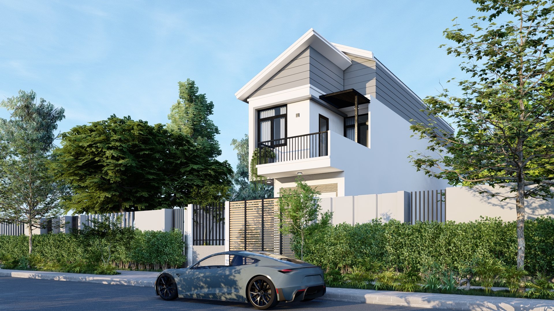 kết hợp mái dốc hiện đại giúp công trình cao ráo và bề thế hơn.