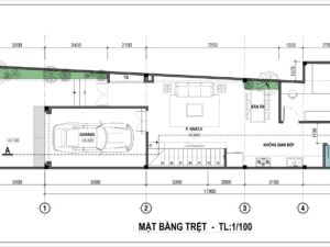 - Tầng trệt bố trí gara ô tô riêng, thuận tiện cho việc di chuyển