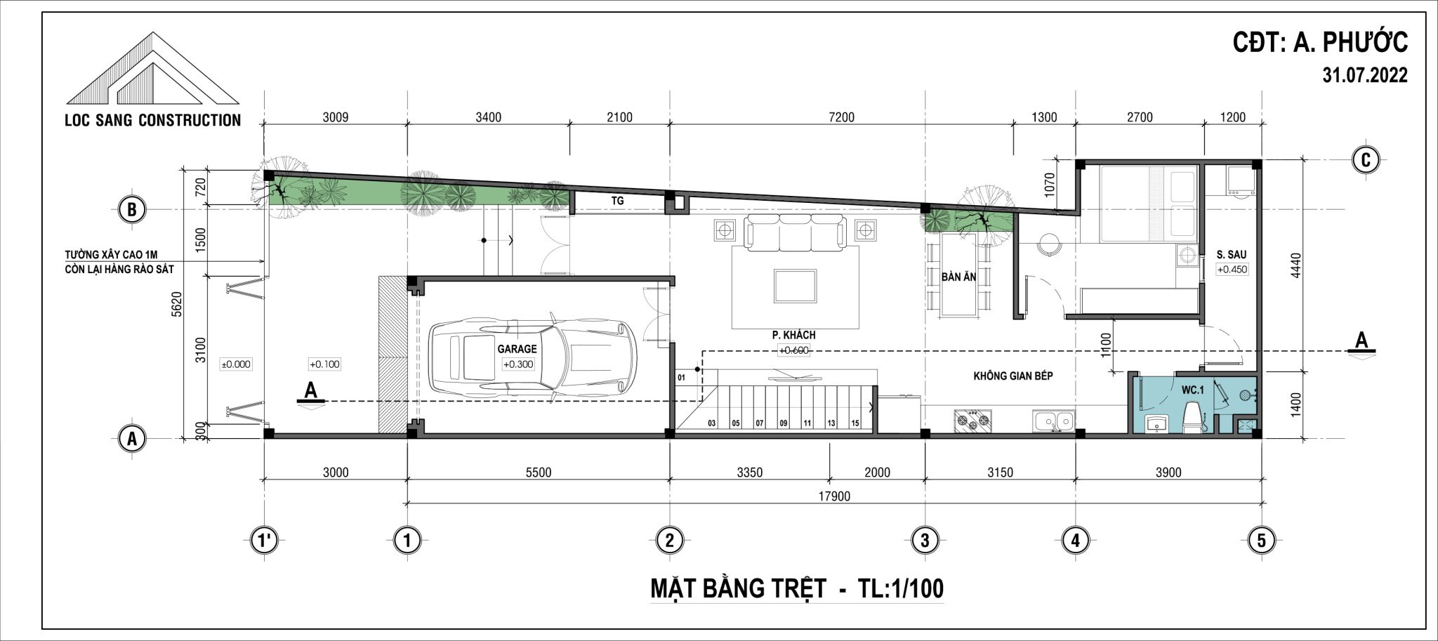 Công trình nhà phố 2 tầng hiện đại có gara ô tô của chủ đầu tư Anh Phước
