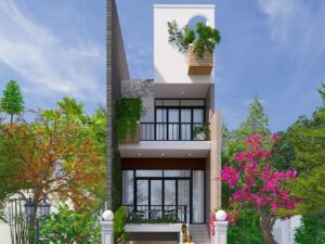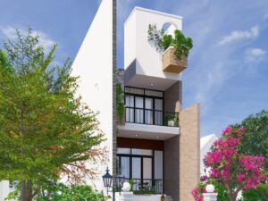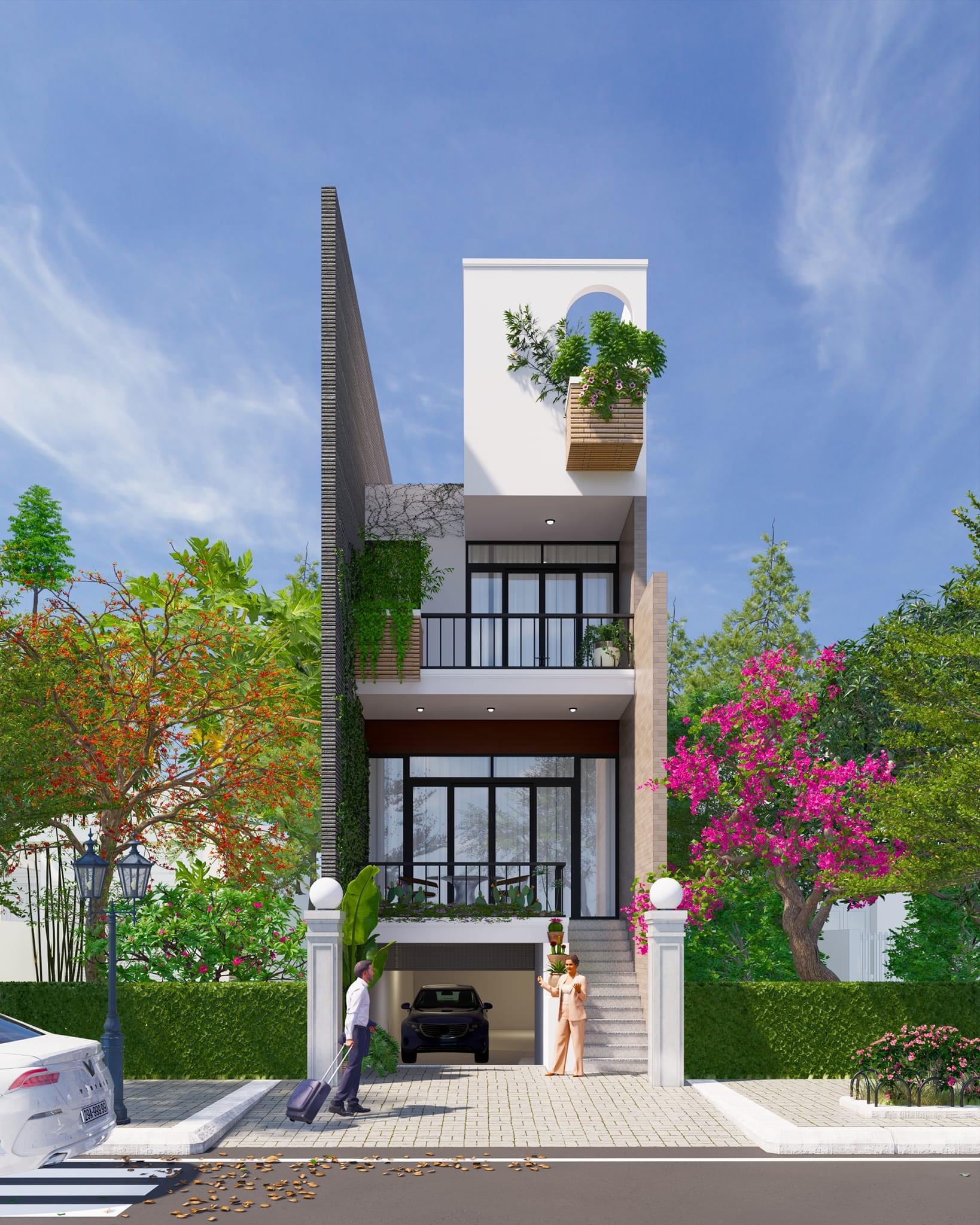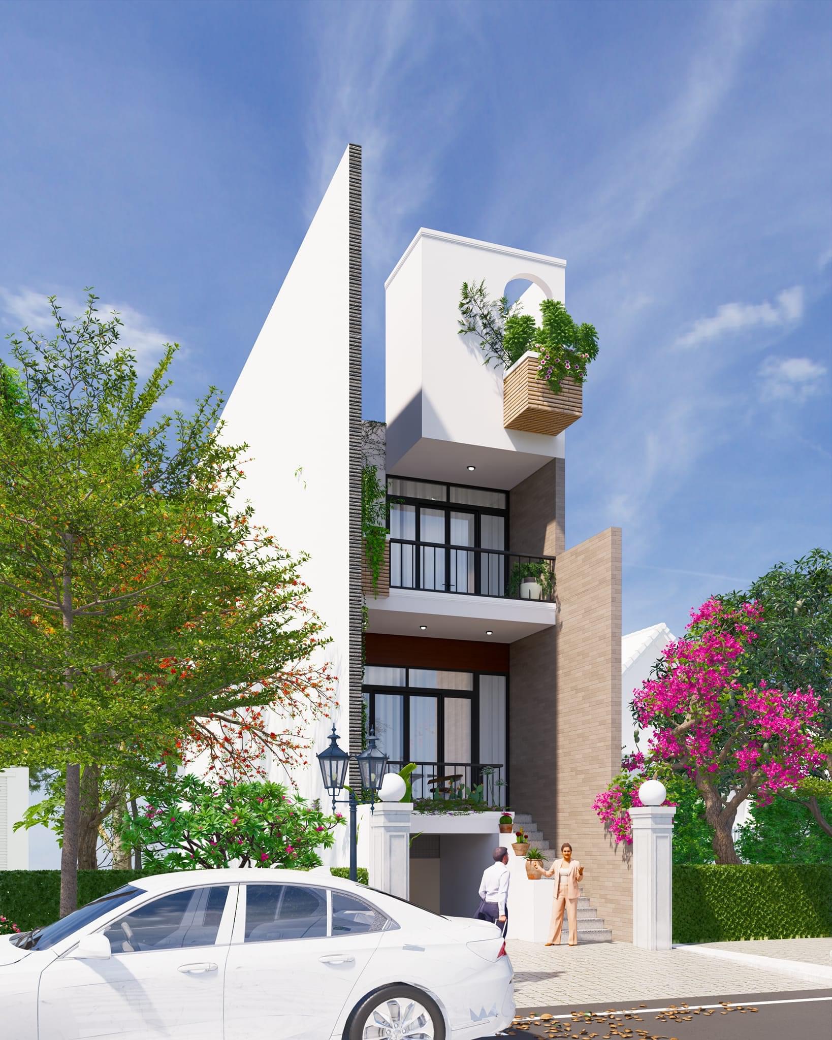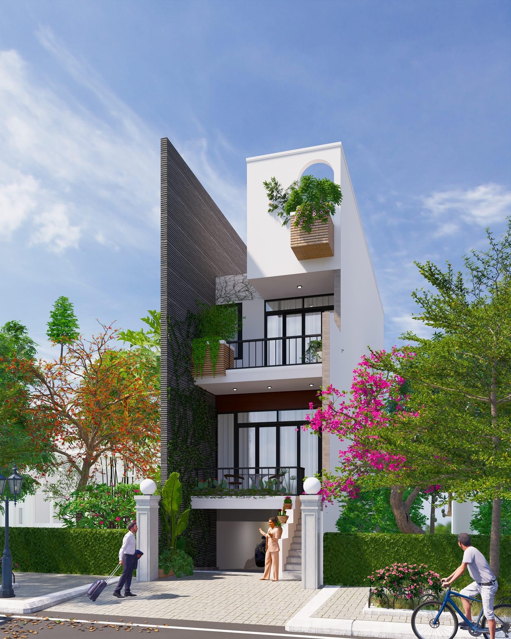 - Điểm nổi bật: Mặt tiền xanh, ban công rộng, hình khối thanh thoát